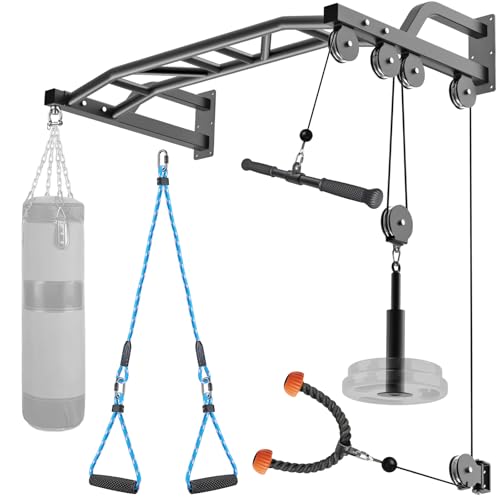 SELEWARE Heavy Duty Klimmzugstange Wandhalterung Multifunktionelle Klimmzugstange mit Seilzugsystem Gym LAT und Lift Pulley Attachments Heavy Bag Hanger
