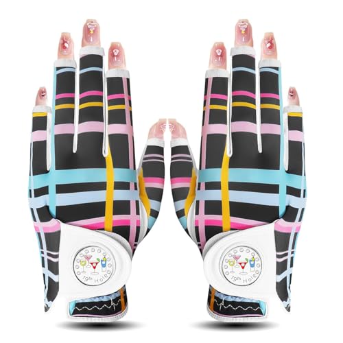 LOVMEAD Damen Golf Handschuh Golfhandschuhe Leder mit Ballmarker All Wetter Linke Rechte Hand Paar, Damen-Golfhandschuhe Rain Grip Weathersof atmungsaktiv weich rutschfest (Gemischte Linien, XL)