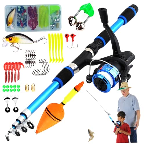 Kids Angel Stange, Kinder Angelgeräte Set, 5,9 Fuß tragbare Teleskopkinder Angelern- und Rollkombinationen und Schnur mit Fischereikits für Kinder, Jungen, Mädchen, Angelausrüstung für Kinder