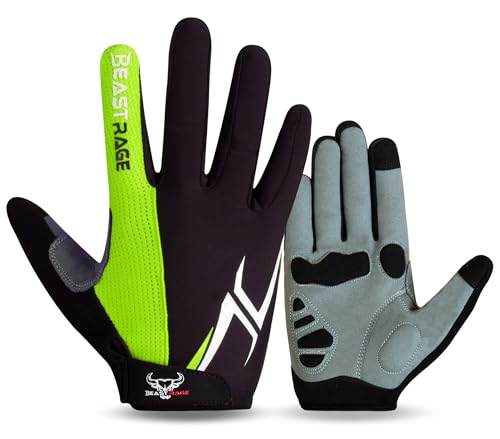 BEAST RAGE Fahrradhandschuh, halber Finger, für Damen und Herren, Gelpolster, rutschfest, stoßabsorbierend, Fitnesshandschuhe, atmungsaktive Mountainbike-Handschuhe für Mountainbike (Vollfinger, Rot