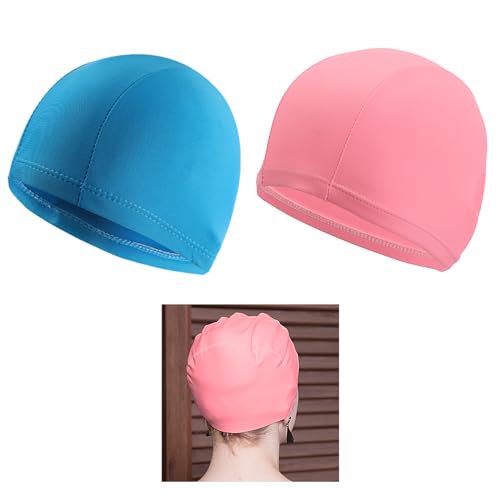 Badekappe 2 Sück Unisex Badehaube Damen Bademütze Schwimmhaube Schwimmkappe Flexible Kappe Badehut für mädchen Lange Haare Herren Kinder Jungen (Himmelblau, Rosa)