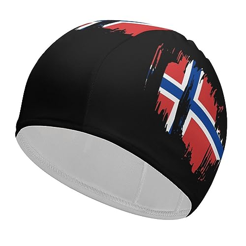 Badekappe mit norwegischer Flagge, Retro-Stil, für Damen und Herren, lange Haare, Badekappen zum Schwimmen, wasserdichte Badekappen