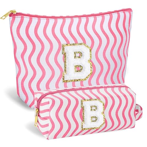 SEFORICO Personalisierte Kosmetiktasche Damen Mädchen - Geburtstagsgeschenke für Frauen A-Z Schminktaschen 2 Pack Reise Kosmetiktaschen Geschenke für Teenager Mädchen, Beste Freunde, Schweste(Rosa B)