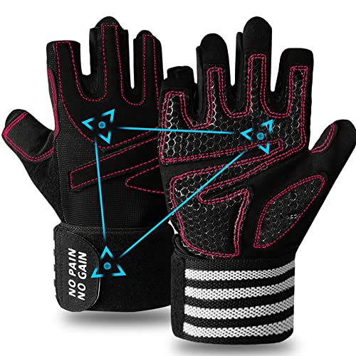 Finger Ten Fitness Handschuhe Handgelenkschutz Trainingshandschuhe Damen Kraftsport Fitnesshandschuhe Halb Vollfinger Sporthandschuhe (Halbfinger Rot, XS)